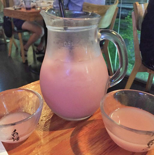 種類豊富なフルーツマッコリが有名とのコトで今回はクランベリーマッコリをチョイス(美味☆)。