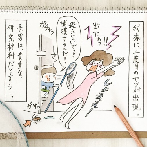 絶叫する母を尻目に、捕獲に走る長男。