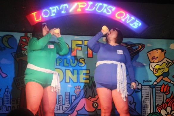 ぽっちゃりアイドル「どすいこいシスターズ」が、キレッキレのダンスと圧倒的な歌唱力で会場を魅了しました。「初恋サイダー」の替え歌「どすこいサイダー」と、EZ DO DANCEのガチダンス。若さ溢れる爽やかなパフォーマンスで、ファットウーマングランプリのラストを飾りました。