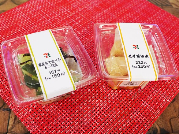 セブン-イレブン 塩昆布で食べる! かぶ胡瓜・180円、長芋醤油漬・250円