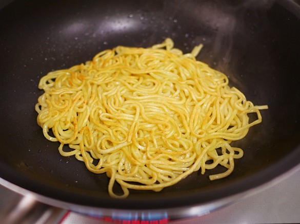 コツ②硬ゆでした麺をこんがり焼く