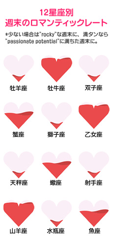 今週末、ロマンティックな時間は巡ってくるのでしょうか? アメリカで大人気の占サイトの日本語版「Tarot.com Japan」から、今週末の恋愛運をお届けします。星座ごとの恋愛運がわかるロマンティックなハートレート付きです!※こちらの記事に含まれる日付はアメリカ時間を基準にしています。日本では同日の午後から翌日の午後にあたります。 ⇒【12星座別週末のロマンティックレート】はこちら http://joshi-spa.jp/?attachment_id=623482 今週末は情熱的な蠍座にある月が、星たちの宇宙恋愛ショーに完璧なステージを提供してくれます。金曜日、金星が冥王星と抱き合い、木星は金星とスクエアに。その結果、これまでリスクを避けようと控えていた場所にも、愛する人と出かけたいと深い欲望が湧いてくるでしょう。 お互いに自分の最も傷つきやすい部分を勇気を出して見せられそう。お2人の感情を盛り上げる可能性も。今週末は人生が変わるような恋愛にたどり着くようです。あなたも、お相手も対処できるはず・・よくも、悪くもですが。 <記事提供元サイト:Tarot.com Japan> Tarot.comはアメリカをはじめ世界中で愛される占いサイト。毎日の運勢や毎月の星占いから簡単にできる本格タロット占いまで、全て無料で楽しめます!