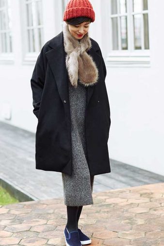 ゆったりサイズで体型を隠してくれる上に、ツヤのあるウール素材のためゆったりサイズでも子供っぽくならないのがポイント。全体的にルーズなシルエットなのでベルトを締めてウエストマークして着用すれば、強制的に腰のくびれが際立ち、体型は更に綺麗に。