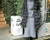 今年大人気のニットアップできれいな縦長ラインを強調!ダウンのボリュームを軽減してくれます。足元は黒で統一してすっきりと!