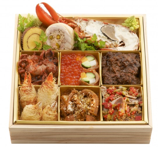 爪がお重からはみ出るほど大きなオマール海老が豪華なお正月を演出。柔らかく煮込まれた牛ホホ肉やトリッパなど「お節でもお肉が食べたい!」という人におすすめです。