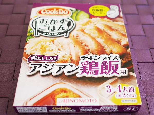 まず一つ目は、以前大ブームとなったシンガポールの名物料理『海南チキンライス』が炊飯器でカンタンに作れてしまう調理の素。きっかけは、友人宅でふるまわれた鶏ごはん。おいしくて作り方を聞いたところ、コレを使って炊飯器で炊いただけとのことでした。