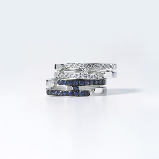 写真上から:YAEGASUMIのホワイトゴールドとダイヤモンドのリング(税抜 199,000円)、ホワイトゴールドとブルーサファイアのリング(税抜 170,000円)/NIWAKA公式サイトより http://www.niwaka.com/
