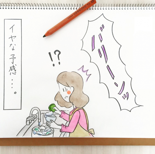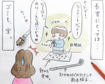 まさかのパパのアイアン! そばには粉々に砕けた電球、うっとり愛おしそうに、電球の中身を見つめている長男・・・。
