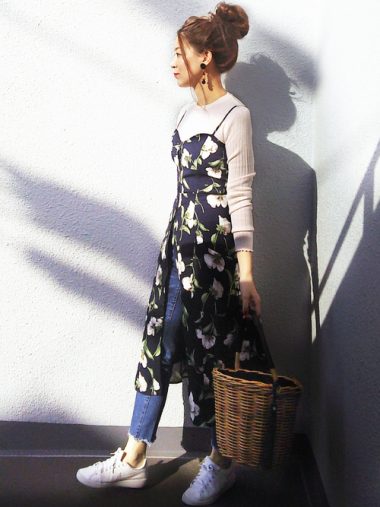 花柄ワンピコーデたっぷりと描かれた、ちょっぴりヴィンテージ感のある花柄が素敵な黒のワンピ。こんな風に色落ちデニムと合わせて、春らしさのあるスタイルにまとめても。また、ワンピだけで着て上品なお出掛けスタイルをつくるのもおすすめです♪ ⇒【写真】はコチラ https://joshi-spa.jp/?attachment_id=686400 こちらは花柄キャミワンピ。薄手のカットソーを合わせてレイヤードを楽しんで。トレンドのカットオフデニムを合わせれば、春のピクニックスタイルとしてもいいですね。お団子ヘアで視線を上にもってくることで全身のバランスも抜群。大振りのピアスも小顔効果がありそう。⇒【写真】はコチラ https://joshi-spa.jp/?attachment_id=686402 こちらは黄色のお花がびっしりと詰まったとっても可愛いスカート。コントラストのあるカラー使いが大人女子にぴったりです! 深みのある紺地のスカートには、その他のアイテムを明るいカラーで春らしくまとめるとGOOD。トレーナー&スニーカーを合わせればきれいめカジュアルコーデに。ゴールドチェーンのミニバッグは上品さもプラスされます。 ⇒【写真】はコチラ https://joshi-spa.jp/?attachment_id=686404 こちらは後ろ下がりのバックテールスカート。絵具で描かれたようなふんわりとした赤がとっても素敵ですね。よく見るとウエストにはサークルのバックルがついていて、コーデのポイントになっています。ひらりと風になびくスカートは女性らしさ満点。他のアイテムをブラックで統一して、花柄スカートを引き立てて。 ⇒【Instagram】はコチラ https://www.instagram.com/p/BRLOHxQFX4Z/