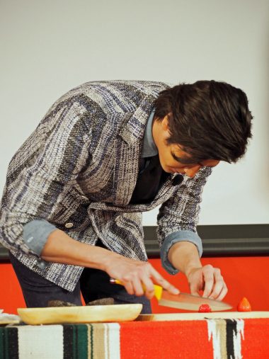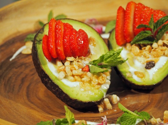 包丁さばきがやっぱりお見事! その上、盛り付けもセンス良し。試食した司会者曰く、ヨーグルトの酸味とフルーツの甘さ、アボカドの滑らかさとシリアルの食感が絶妙なハーモニーを奏で絶品だったそうです。しかも、フルーツとヨーグルトの組み合わせなんて、お通じに効きそうですよね。
