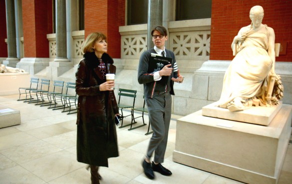 メットガラというと、煌びやかに着飾ったセレブ達のほかに注目されるのが、『VOUGE』US版の編集長であるアナ・ウィンター。映画『プラダを着た悪魔』のメリル・ストリープが演じた鬼編集長のモデルといわれる彼女は、メットの理事も務めており、オープニングパーティーを仕切っています。