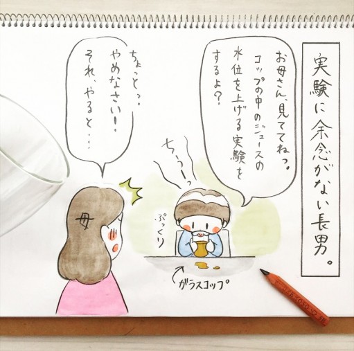 わけもわからない実験に、テーブルの上はジュースでビチャビチャに。そして…。