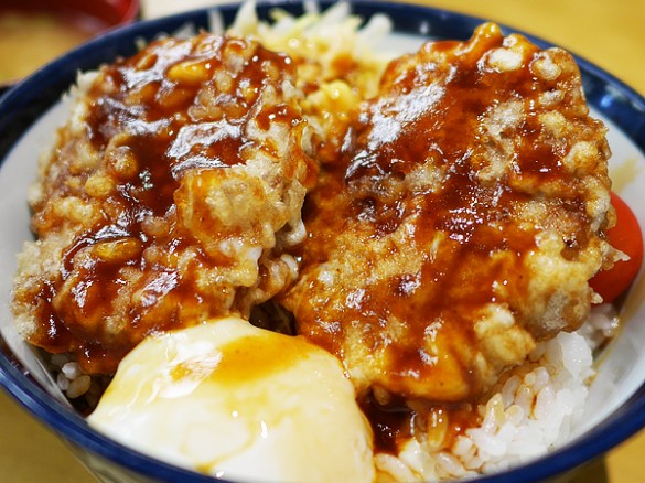 まろやかでありつつも、キャベツのシャキシャキ感やコールスロー味の爽やかさが見事に融和し、中濃ソースと天丼のタレを合わせたような特製ソースが、全体をバランス良くまとめています。まさにハワイアンと和風のいいとこ取りで、完璧に計算されたメニューと言っても過言ではないでしょう。これまでの肉系天丼の中でも群を抜く大傑作です!