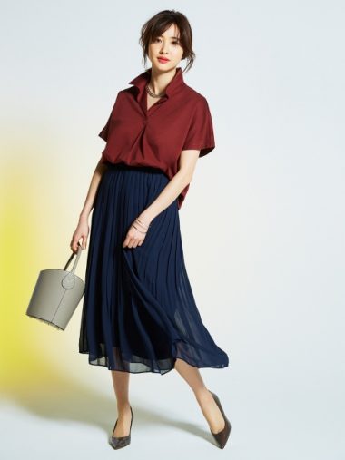 また、オリーブも深い色味で高級感があるので、オフィスでジャケットの下に着るのにちょうどいいです。
