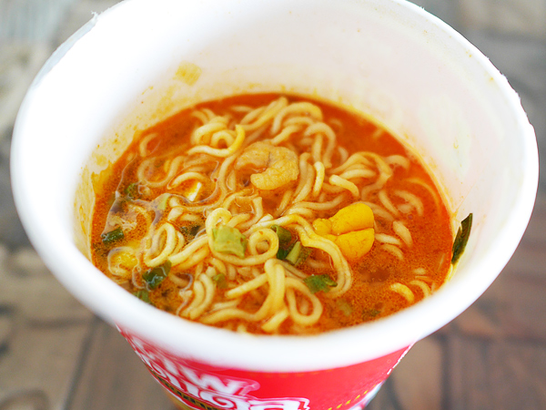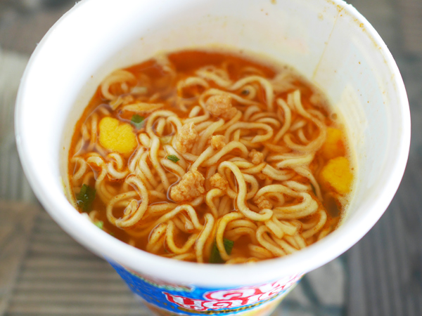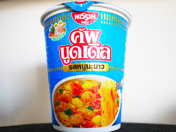 スーパーなどで見かけてずっと気になっていたのが、タイの日清食品グループ(タイ日清:http://www.nissinthailand.com/th/)が製造し、日本の日清食品が輸入しているタイ版カップヌードル。馴染みの「トムヤンクン」以外、「ムーマナオ」、「ミンスドポーク」といったように、タイ初心者にとってはどんな味なのか、想像できません。