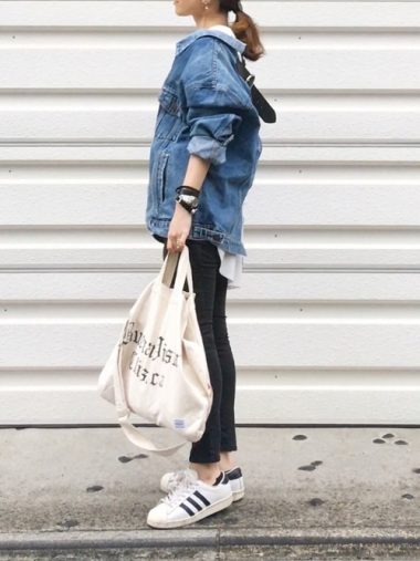 今年のトップスは長め丈やオーバートップスが多く、それらにボトムスもワイドを合わせて全体的にダボっとしたファッションが注目されています。でも、上下とも大きなシルエットは上級すぎてしまうので、トレンド感がある大きめトップスには、まずはスキニーなどのコンパクトなボトムスを合わせましょう。