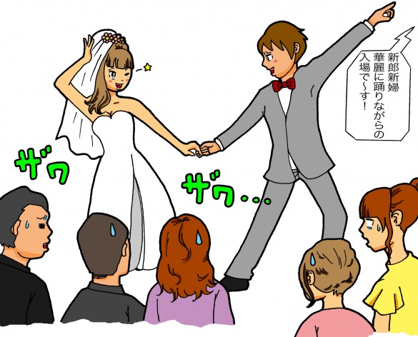 きっとウケると思ってやっているのだろうけど…白けきった会場で、新郎新婦の寒い演技がダダ漏れする中『はやく終わらないかな…』というみんなの思いをビンビン感じながらフルコーラス歌うのは本当に辛かったです」