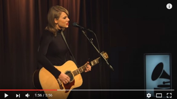 全身黒コーデ、アコギ1本で歌うテイラー・スウィフト