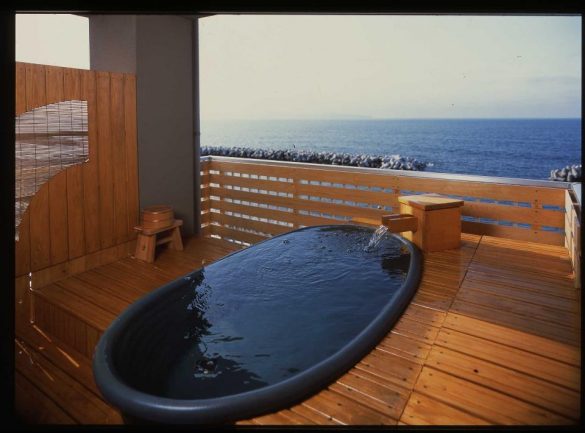 SPALTをつくったのは、鳥取県米子市にある皆生温泉の老舗旅館「湯喜望 白扇」。すべての客室から日本海を一望できるうえ、敷地内には大浴場と露天風呂専用の館があり、さまざまな湯船を楽しめることで人気です。