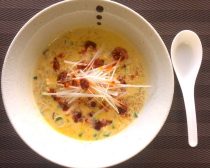 【材料】1人前 冷凍チャーハン:150g 牛乳:150ml 食べるラー油:お好みで 中華粥材料【作り方】 1)冷凍のままのチャーハンに牛乳を注ぎ、よくかき混ぜる。 中華粥つくりかた2)600Wで2分半レンチン! ※牛乳の吹きこぼれには注意。 3)一度、取り出して混ぜ、更に2分半レンチン。 4)器に盛り、食べるラー油をお好みでたらして完成。 IMG_6287チャーハンに牛乳??? しかも混ぜてレンチンしただけじゃん――と言う前に、一度試してみて下さいな。びっくりするほど美味しいですから♪  チャーハンの塩分が牛乳の甘さを引き立てつつ、クリーミーだけどあっさりとした仕上がりに。見た目と味にさらにこだわるなら、白髪ネギなんかを乗せたらもうパーフェクト!  もっとサッパリさせたければお水で作ってしまってもOKです。  酔ったワガママ彼氏を、レンジでチン!の時短レシピで、あなたの魅力にも酔わせちゃいましょう♪ <TEXT/タケムラダイ> 【タケムラダイ】 レンチン料理研究家。冷凍食品やチルド食品、レトルト食品などのアレンジレシピを提案している。食品ロスゼロを目指す「ビストロレンチン!」(福岡市)の運営、食品メーカーのレシピ開発などで活躍中。ブログ:「タケムラダイのあったかレンチンライフ」