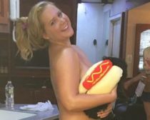 カレンダーの頃と比べると痩せたとはいえ、決してセクシーとはいえないエイミーのインパクトあるセミヌード。
