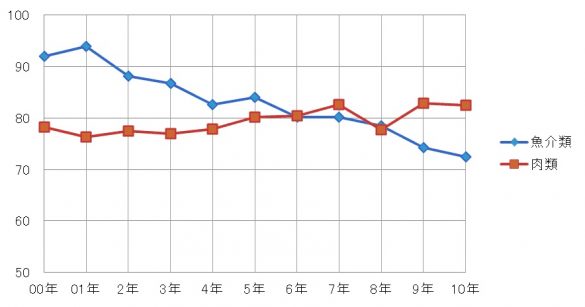 この5年で肉と魚が大逆転!