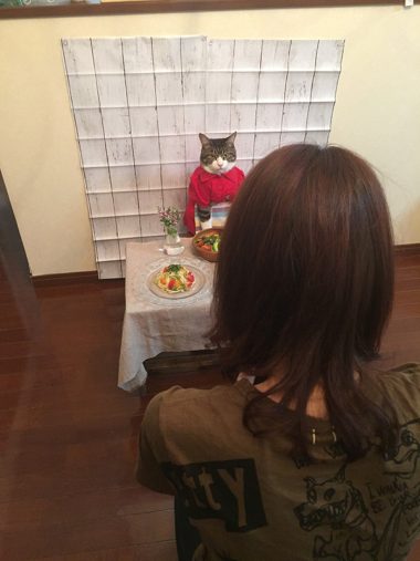 「普段はよく動くんですが、洋服を着せるとまったく動かなくなるんです(笑)。『魚料理なんかを目の前にしたら、猫ちゃんが飛びついて撮影にならないんじゃ?』なんて質問もいただくのですが、料理や食材になぜか興味を示さないんですよね。あ、でも鰹節にはちょっと興味を示しますかね(笑)」