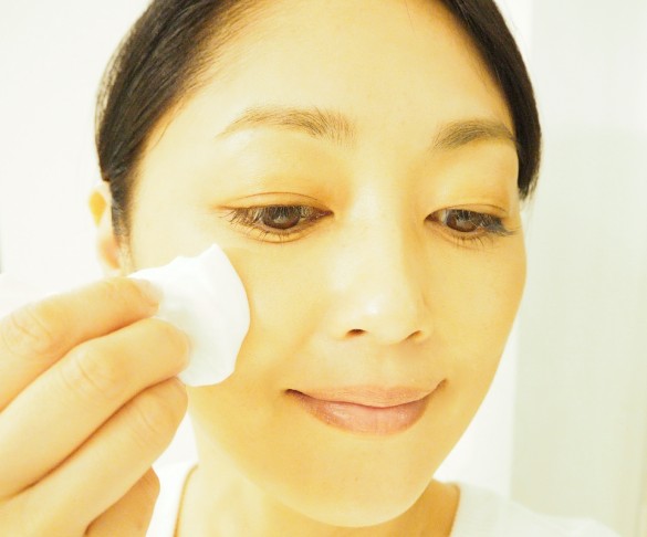 眉毛や目を覆うようにコットンをのせて、5分おきましょう。コットンを外したら、化粧水からいつものスキンケアを行ってください。