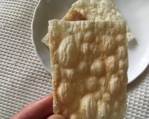 今回は、以前紹介したハイブリット版ともいえる「大判タイプ」です。さらにコンビニなどでよく見かける「細くカットされたタイプ」は、レンジ加熱すると、クリスピー感が増してプリッツのような味わいになるのですが、大判タイプはさらにゴージャスで、クラッカーのようになります。