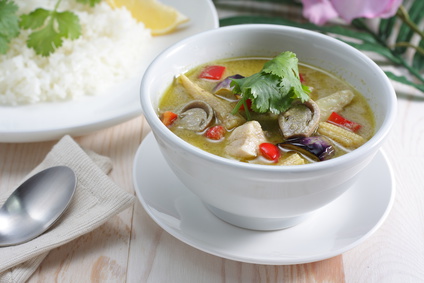レッド、グリーン、イエローとありますが、グリーンカレーは驚異的な美味しさ。具材はエビでも鶏肉でもよく、野菜は筍やパプリカなどが定番。