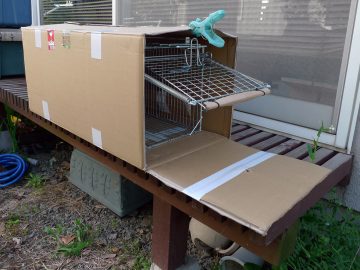 ご飯のお礼にぽーが自分で扉を閉めてくれることは絶対にないことはもうわかっている。そこで、捕獲器2号「はいるくん」の登場だ。