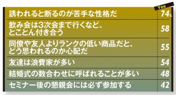 加えて、「同僚や友人よりランクの低い商品だと、どう思われるのか心配だ」(55%)も半数超えと、ある意味、真の日本人。それが周りにも理解されているのか、「結婚式の数合わせに呼ばれることが多い」(48%)とのこと。