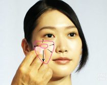 メイクのなかで一番おろそかにちがちなチークですが、チークにはファンデで仕上げた艶肌に生命感をプラスする大事な役割があります。頬の高い位置から楕円形にのせるのが一般的なつけ方ですが、吉川氏が提案する“体温チーク”は思いっきり広くチークをのせるんですよ!