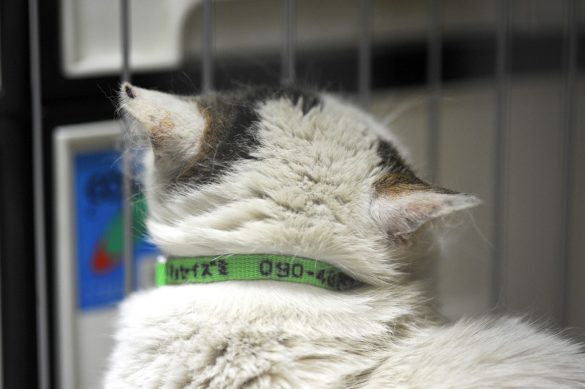 首輪をつけて、耳カットもした。カットした傷口も乾いてきている。よし、解放だ!