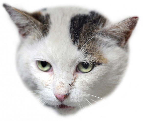 保護した当初、ぽーは調子が余り良くなかったようだ。顔は汚く、よだれをずっと垂らしていた。手術の予約がてら医者に連れて行くと「風邪をひいている」と診断された。エイズ・白血病は両方陰性。良かった、風邪だけだ。薬をもらって、しばらく療養しような。