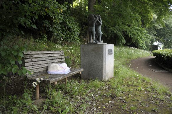 もう一度公園のベンチに戻し、ファスナーを開けて準備完了!
