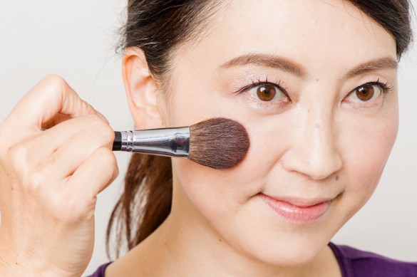 ⑥チークはマスト! でも若い人と同じではありません。頬の高いところから外へ向かってプラス。
