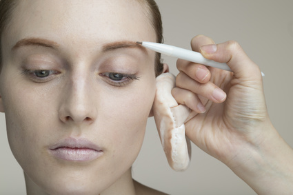 1)まず、軽くベースを施して眉を軽く太めに描いておきます。