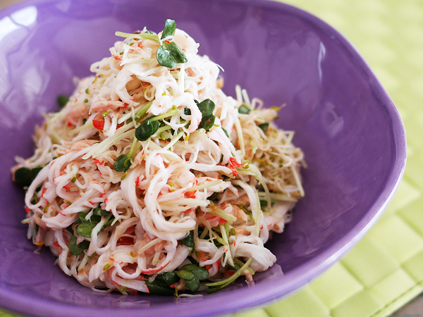 カイワレのような辛味がないため、たっぷり食べられて万人受けしやすいのが魅力と言えるでしょう。もちろん低カロリーなので、ツナサラダやマヨネーズ系のサラダに加えると、おいしいかさ増し食材として活躍してくれます。例えばこんな感じ。