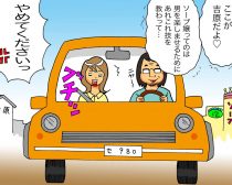 「ソープ嬢って、男を楽しませるために、元締めの男があれこれセックス技を教えるわけよ」、「桶を使ったり、泡を使ったりして、こうして、ああして、楽しまるんだって」、「口にくわえていかせるようになれば、一人前だそうだよ」など、2人きりの狭い車中で、次から次へといやらしい言葉を連発。
