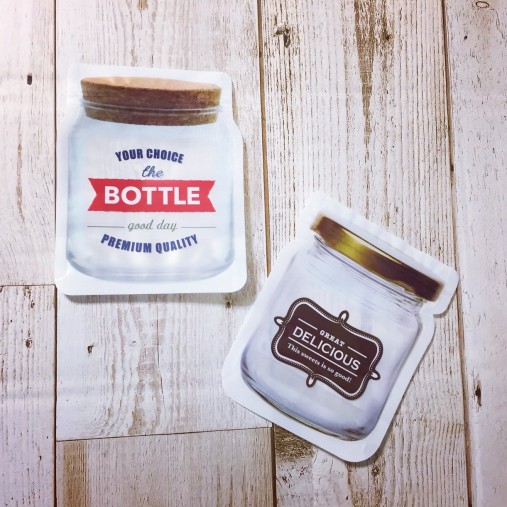 こちらも、ちょっとしたお菓子を入れるのに役立つギフトバッグ。ガラス瓶をモチーフしにしたおしゃれなデザインです。