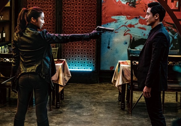 ――スタイリッシュアクションと謳われています。しかしヒロインが斧を持ってバスに飛び移って戦うなど、生々しさもあり、コワかっこよかったです。斧というアイテムも凄いです。 監督:あそこは車でバスを追撃して飛び移り、バスにぶら下がる。そうしたシーンがあるので、斧が必要かなと思いました。それに斧が持つ、ちょっと素朴でありつつも粗野な感じと、スクヒが相まったときのシナジー効果を狙いました。