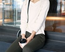 素材感も毛玉が目立ちそうで、なによりサイズ感が難しい! タイトでもゆったりでもないので、着太りを招く恐れもあり、一枚で着るには難しいですね。