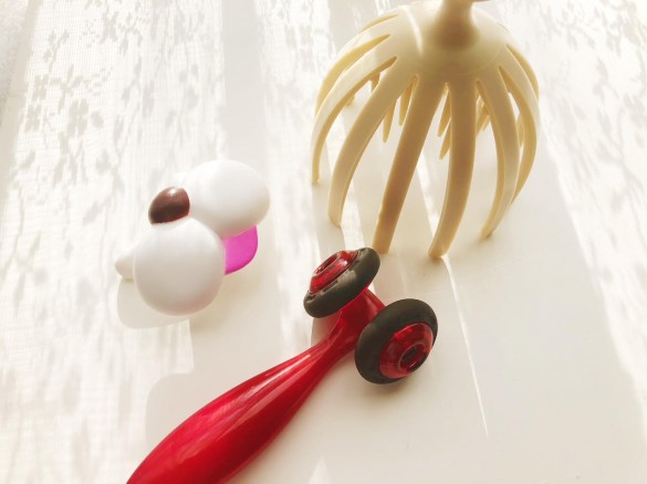 最初に紹介するのはお風呂で使えるヘッドスパアイテム「ツボスパヘッド」。持ち手をつまみ頭に押しあてると、外側の突起が心地良く頭皮を刺激しながら広がり、中央にある細かな突起がツボを押してくれます。異なる2つの刺激が同時に味わえるというわけ。指先では難しい繊細な刺激による心地よさは試してみる価値アリです。