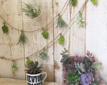 部屋にデコレーションするだけで、スタイリッシュなイメージに仕上がるガーランド。セリアでエアプランツや多肉植物のフェイクグリーンをアレンジしたガーランドを発見しました。ナチュラルな麻ひもとの組み合わせにセンスの良さを感じます。
