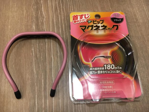 まずはピップ株式会社の「ピップマグネネック」。今年3月に発売された新商品なのですが、磁気がワッカ状についていて首に巻ける形状になっています。