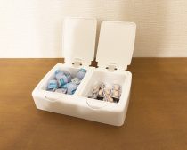 先ほどご紹介したものより浅型なので、薬などの小さな物も取り出しやすく便利。筆者は薬と酵素洗顔のカプセルを入れていますが、輪ゴムやクリップなどの収納にも最適です。