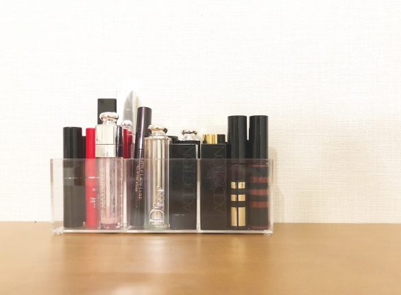 以前は大きなポーチにまとめてごそっと入れていたのですが、それだとお目当てのリップを探し当てるのも一苦労…。しかし「アクリルケース」のような透明のケースを選べば、上から見ても横から見ても種類が一目瞭然なのでとても便利です。