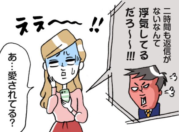 ただ付き合い始めてから、彼はとにかくマメで束縛がスゴくって……、最初は“愛されてるから束縛されるんだ”と思い込んで、ノロケてましたがだんだんエスカレートしてきて(泣)。2時間ごとに連絡つかないと“浮気してるんだろ!”と激怒されたり、電話に出れない時の鬼電&鬼留守電なんて日常茶飯事」