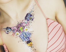 「コーチェラ・フェスティバル」が盛り上がる中、胸元をカラフルな押し花タトゥーシールで飾った写真がインスタグラムに投稿され、各国のオジサマ系メディアの注目を集めました。 というのも、写真の中にはデコルテを飾り付けたものだけでなく、押し花をブラジャー代わりにしてバストトップを隠したちょっと過激な“押し花ブラ写真”が混じっていたから。